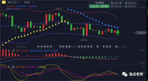 4小时布林带进入上轨与下轨之间收敛整理,短线整理放缓,上周五反弹中轨轻微承压,结合1215-1235区间行情,目前接近下轨处支撑。短线未跌破1215前暂时不过分看空,围绕1215上方适当看反弹,下破再调整思路,上方继续看至1230上方。小时图反弹上破1225但没收盘在此位之上,短线震荡节奏不改。目前二次下探。欧盘开盘后只要不破1217,短线继续看反弹。综合来看,近期黄金整体还是处于震荡走势中,非农之前预计金价于1235-1215区间弱势震荡。今日操作上指点建议低多为主,高空为辅。短线上方关注1227一线阻力,下方关注1217一线支撑。