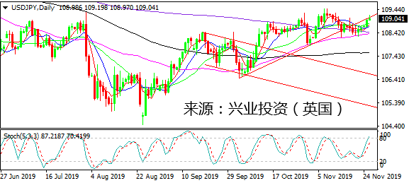 今日亚市早盘,美联储主席鲍威尔发表讲话称,若经济保持在当前轨道,那么当前的货币政策可能依然适宜,暗示暂时不会继续降息。他认为经济的风险包括通胀受到抑制和制造业疲软。鲍威尔讲话没有太大新意,美元维持坚挺。随着感恩节假期临近,市场波动可能逐步趋于平淡。