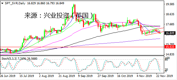 日图跳空低开后进一步走低,随机指标显示仍有进一步下行空间。4小时图跌破近期反弹通道底部,关注能否重返该线上方。小时图再创新低在16.80一线企稳,短线仍有一定的反弹空间。日内建议激进者在16.82上方轻仓做多,紧设止损,上破16.90跟进。