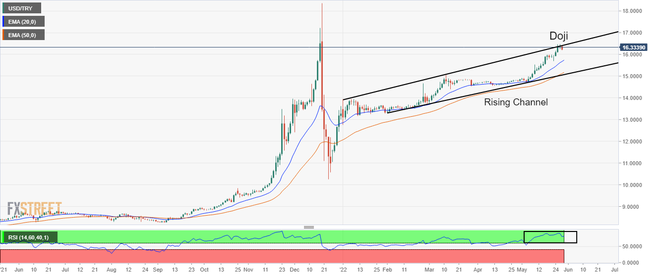 周一欧洲时段早盘,美元/土耳其里拉在16.30附近震荡。上周汇价在16.45附近遇阻,此前自5月5日低点14.68强势上扬。