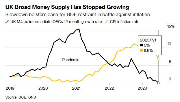 英国7月广义货币供应量至少13年来首现零增长,这一数据加深了正敦促英国央行需要在对抗通胀的斗争中克制的货币主义者的担忧。