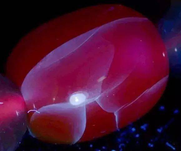 2、用365nm波长的紫光灯检查注胶南红,注意这里专门提到365nm波长,不要用市面常见的395nm紫光灯。因为在395nm的紫光下,荧光反射与背景反射界限不明显,造成无法分辨荧光。